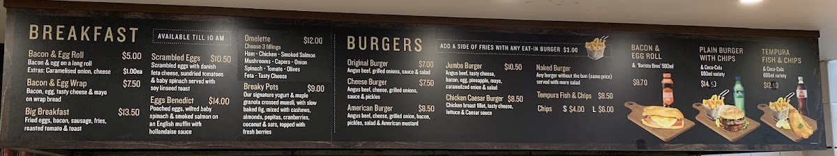 The Sandwich Bar serves up creative combinations such as Danish Salami with creamy Feta and Grilled Vegetables, perfect for a midday pick-me-up. For lunch, indulge in their range of burgers like the classic Cheese Burger or the crispy Tempura Fish & Chips.